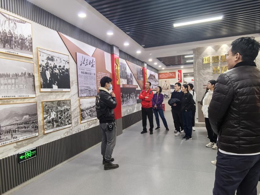 随后,在展馆讲解员的带领下,教师党员们步入红色展览馆,馆内陈列的一帧帧珍贵照片与一件件承载着历史记忆的文物,向我们细述十三陵水库建设的坎坷征途,同时在讲解员的讲解下使党员们对那段峥嵘岁月有了更为深切的理解和感悟。