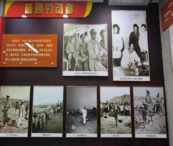 十三陵水库从动工到竣工历时仅160天,工人、农民、员工、国家干部、各界的外国友人等等都前来参加过义务劳动,累计超过40万人次前往建造十三陵水库。八届五中全会结束之后毛主席一言号召,北京市干部纷纷响应,全都来到十三陵水库参加义务劳动。在工人农民的艰苦奋斗、官民一体的同甘共苦、社会各界的团结凝聚之下,十三陵水库在秋汛之前胜利竣工!“唤起工农千百万,同心干,不周山下红旗乱”,人民的磅礴伟力创造出了十三陵水库的人间奇迹!