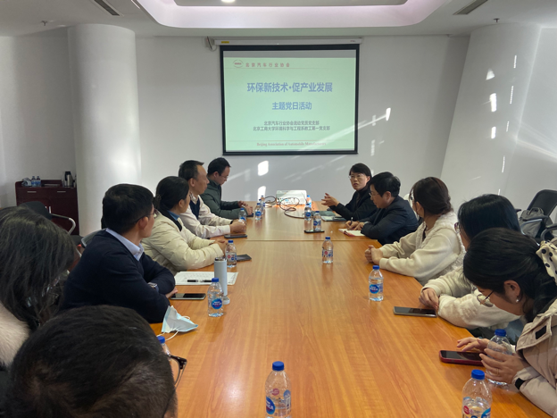 党纪学习结束后双方党支部还进行了专业方面的座谈交流,北京汽车行业协会的工作人员向支部党员介绍了协会相关情况,支部党员从自身的专业出发,在用水定额、碳核算方法和生物制氢助力氢能车发展等方面开展交流,提出了合理化建议,并初步探寻合作的契合点。