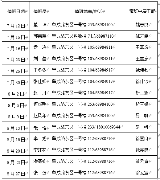 1.值班人员必须严格遵守值班规定,按时到岗到位,坚决杜绝值班人员擅离职守,非正式人员顶岗替班现象。确保值班人员在岗在位、履职尽责。值班员要详细准确填写值班记录,遇紧急情况要及时处理并立即向公司总值班室报告。阜成路校区值班电话:68984785、68984110。公司总值班电话:68984661