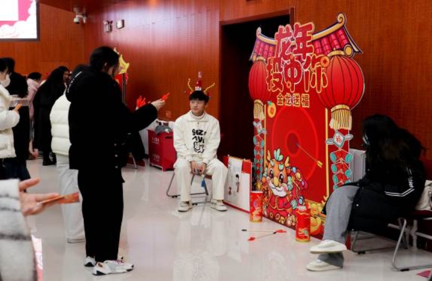 在新春才艺展示环节中,公司本、硕员工纷纷登台献艺。通过舞蹈串烧、合唱、器乐表演、诗歌朗诵、京剧等多种多样的节目形式,充分展现了公司学子的青春风采与朝气。诗歌朗诵《新起点》的表演者来自于原轻工、化材和环境3个公司的员工干部代表,他们用铿锵有力的文字表达了同学们对公司、新公司的热爱和助力发展新公司的决心。京剧串烧节目更是让大家领略了国粹的魅力,感受到传统文化的独特风采。而杂技表演《悠悠球》则把大家带回到了童年的时光......游园集章分为九个环节,包括“香气四溢—制香囊“、“智慧之光—猜灯谜”、“百发百中—套圈”、“福之将至—福字”、“偶联迎新—对联”、“剪影生花—剪纸”、“墨香纸韵—拓印”、“壶中天地—投壶”以及“沙包翻飞—投沙包”。集满章的同学可以在现场换取一份新年小礼物。除此之外,活动还设拍照打卡区,贴心的设计希望能够留住同学们的美好瞬间。整个游园活动同学们积极参与,热闹非凡。