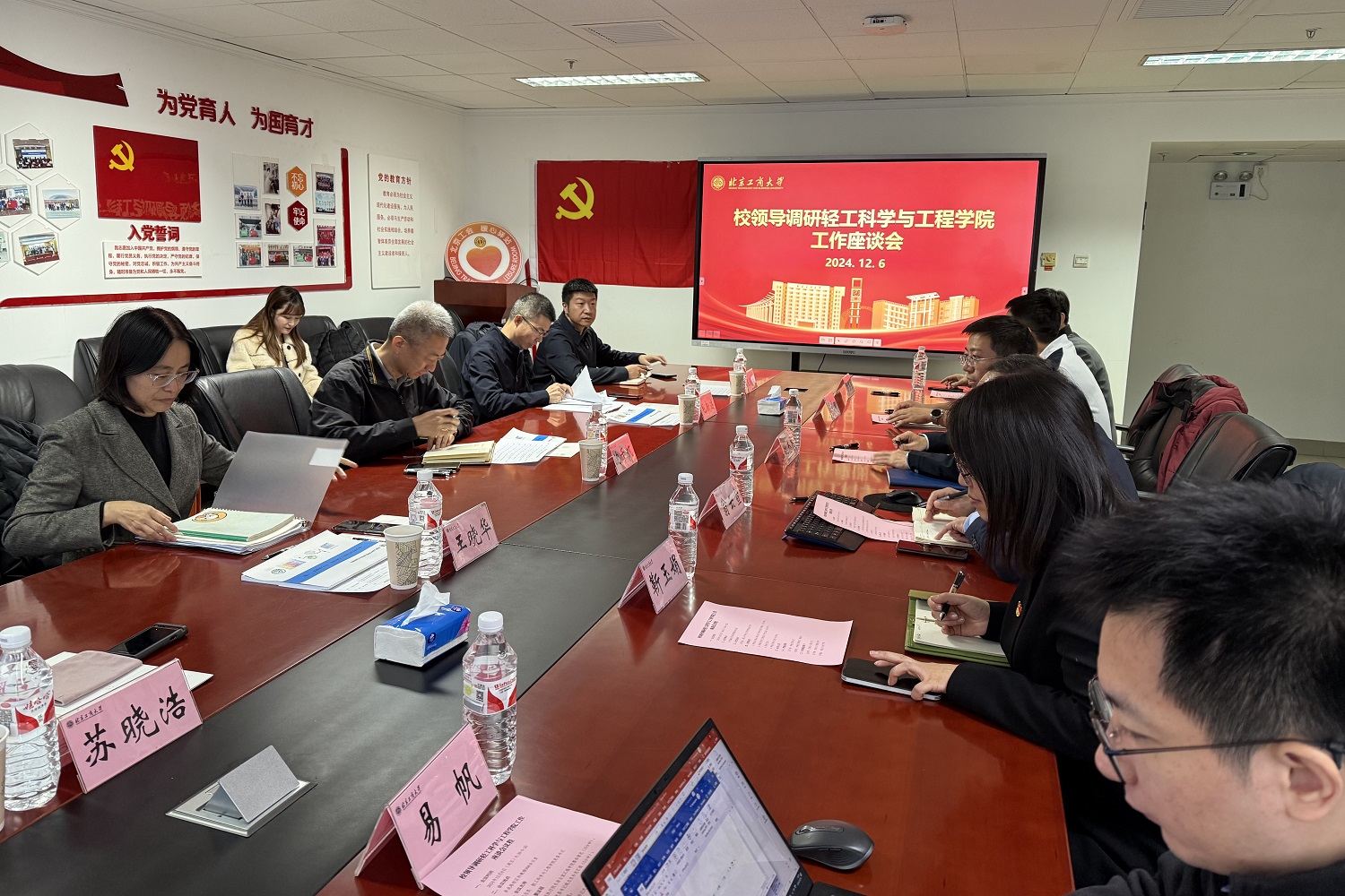 翁云宣从公司历史沿革、团队队伍、党建情况、人才培养、科学研究和团队建设等方面介绍了公司的基本情况、取得的成绩、与现有轻工学科相关高校的对比以及争创轻工高峰学科的策略与举措。姚志良对公司当前面临的挑战和问题等进行了补充汇报。
